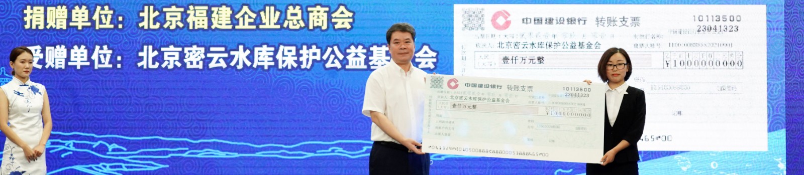 陳春玖會長應邀出席北京密云水庫保護公益基金會成立大會,鄭武執(zhí)行會長支票